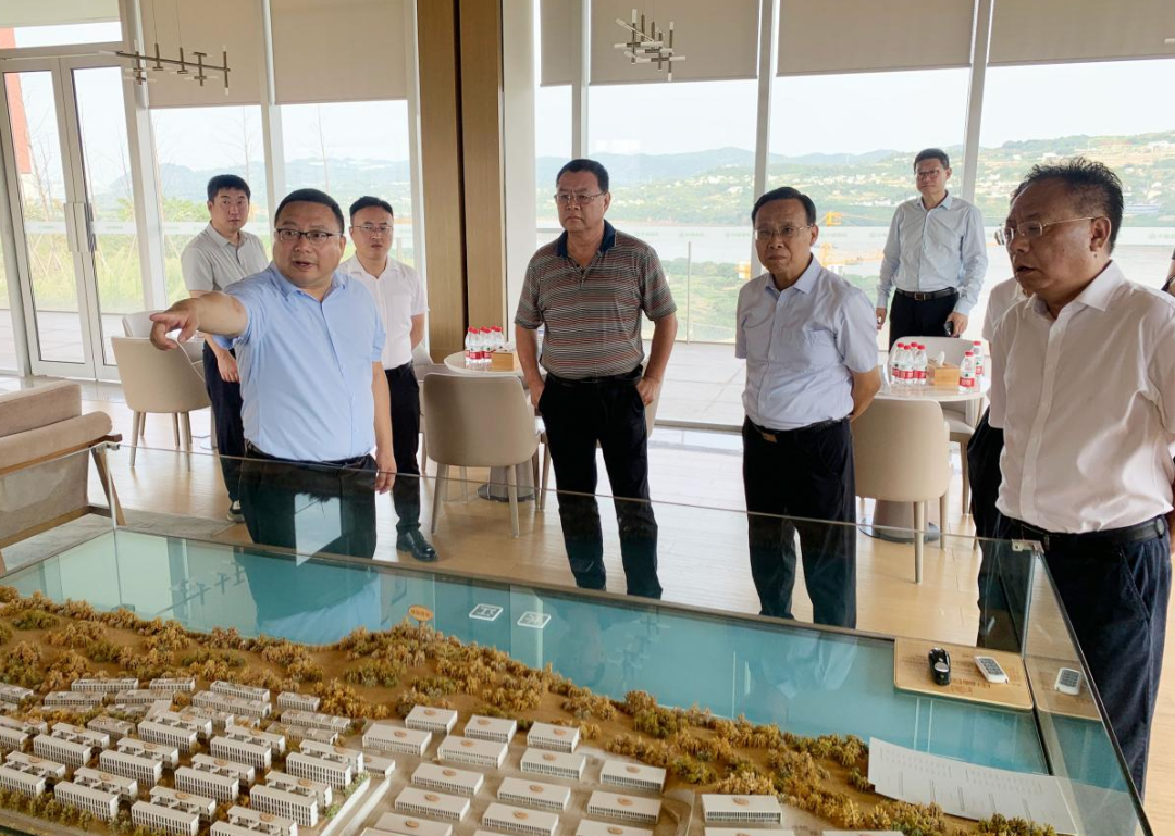 在中国西部木材贸易港,调研组先后考察了贸易港项目展示中心、原木仓库区和板材仓库区建设现场、佛耳岩码头等地,听取了相关负责人对贸易港项目建设情况、工作思路和工作计划等方面情况汇报。