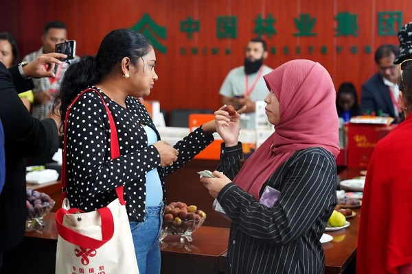 黄其正在致辞中对各位研修班学员参访中林集团表示欢迎。他说,适逢中国国家主席习近平提出共建“一带一路”倡议十周年的特殊时刻,“发展中国家绿色经济与环境保护研修班”来中林集团参访、交流、指导,是对我们工作的认可与支持。中林集团作为中国生态文明建设和林业现代化建设的主力军,已全面开启建设世界一流生态资源产业集团新征程。面向未来,中林集团将坚持贯彻新发展理念,融入新发展格局,履行“为国家储材、为林农造福”的企业使命,聚焦国家“双碳”目标,推动“两山”理念价值转化,努力探索出一条生态美、产业兴、林农富的林业产业高质量发展新路。他表示,今后愿与各友好国家寻求共同的可持续发展途径,并通过真诚合作结出更加丰硕的果实,为构建人类命运共同体添砖加瓦。