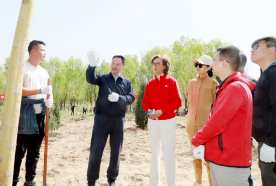 启动仪式后,余红辉和大家三五一组,手持铁锹、水桶等工具来到植树区域,挥锹刨坑、扶苗培土、提水浇灌、平整踩实……共同种下一棵棵快柏、柳树等乔木树种树苗。放眼望去,和煦春风中,新栽下的一株株树苗迎风挺立,展现出勃勃生机。