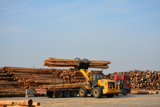 原木发货现场井然有序