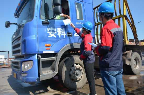 安环部对码头作业平台车辆上线牌进行检查