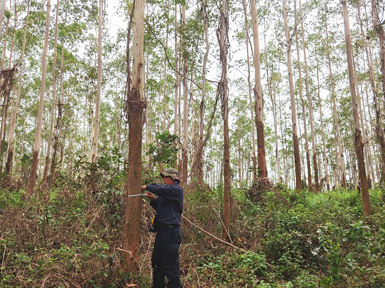 廉江林场分公司技术人员测量树木胸径