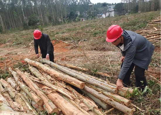 (二)强化木材生产管理。一是严把数据关。雷林公司组织骨干技术人员开展森林资源伐区调查,并严格规范操作流程,确保调查数据的真实性和准确性,更详细、精准地掌握现有森林资源蓄积量,以此来综合分析与评价森林资源与经营管理现状。二是严把质量关。生产部门严格按照木材生产管理规定,坚持“材尽其用,效益优先”原则,成立木材生产管理小组及监督小组,不定时到伐区检查,对木材、木片质量、运输管理、验收过磅等进行指导监督,发现问题及时整改,力求做到安全生产、安全运输。三是严把销售关。廉江林场分公司加强活立木销售管理,成功销售永红林队200多亩活立木。其中1035-4号班,林地面积19亩,最终以每亩一万元以上价格成交,成为分公司桉树活立木的“新标王”。此次“亩产万元林”的诞生进一步鼓舞了全体干部职工的士气,为今后分公司的生产经营发展,努力打造更多的“亩产万元林”提振了信心。