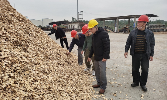 雷林工业公司工作人员对自产木片进行质量监督检查