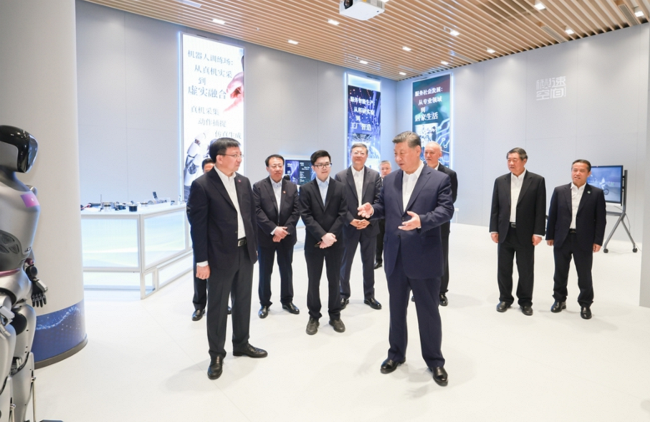 “模速空间”是上海市打造的人工智能大模型专业孵化和加速平台,已入驻企业100余家。习近平来到这里,通过视频短片了解上海市人工智能产业发展情况,察看重点孵化企业的大模型产品展示,听取相关技术研发和企业生产经营介绍。习近平对上海积极发展人工智能取得的实效给予肯定。他指出,人工智能技术加速迭代,正迎来爆发式发展,上海要总结好以大模型产业生态体系孵化人工智能产业等成功经验,加大探索力度,力争在人工智能发展和治理各方面走在前列,产生示范效应。