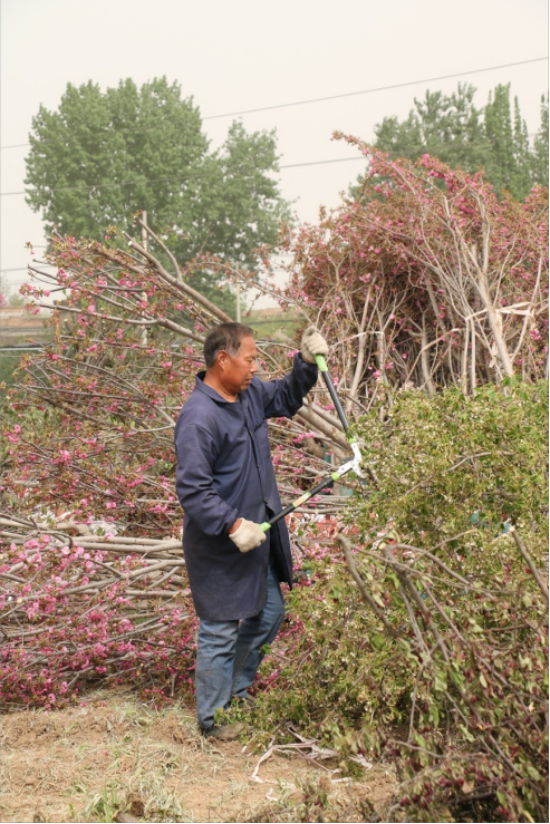 生态修复 严控品质 林场集团所属中林生态环境科技有限公司一线员工在修剪即将栽植的乔木,对乔木的干枯枝、病虫枝和过密枝条进行精细化、科学化修剪,疏枝疏叶,改善树木通风透光条件,减少移栽后树木的水分蒸发量,提高其抗风能力和美观度。(摄影: 张旭)