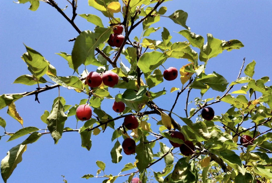 这是徘徊在黄河边上的一曲小调,是当地人在酿造海红酒时,哼唱山曲儿小调,歌词中的“海红”就是我们今天中林植物志的主角。