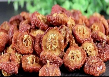 用海红果制成果脯、果丹皮等食品,酸甜适口,老少咸宜,具有健脾胃、增食欲、助消化等功效。海红果干可以直接食用也可泡水喝。