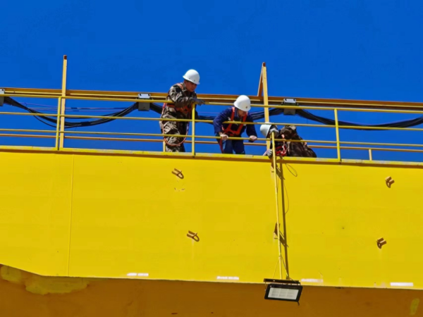 林场集团所属满洲里伊利托满洲里市大风天气较多,林场集团所属满洲里伊利托基地安装在龙门吊外侧的照明灯经常被大风刮落地面,工程部人员接到报修后,第一时间到达现场进行更换,从而保障了基地夜间列车装卸作业的正