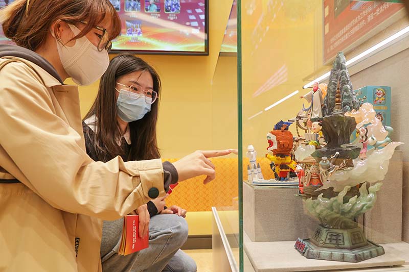 10月10日,观众在“奋进新时代”主题成就展第五单元“坚定文化自信 建设社会主义文化强国”展厅内观看电影相关的文化产品。新华社记者 张玉薇 摄 激扬自信自强 爱党爱国爱社会主义成为时代强音 在“奋进新时代”主题成就展中央综合展区第五单元“坚定文化自信 建设社会主义文化强国”展厅,《习近平谈治国理政》第一卷至第四卷陈列在醒目位置。 在全党全社会喜迎党的二十大胜利召开之际,《习近平谈治国理政》第四卷以中英文版出版,面向海内外发行。 意识形态工作是为国家立心、为民族立魂的工作。10年来,宣传思想文化部门坚持把学习宣传阐释习近平新时代中国特色社会主义思想作为重中之重,深入推进马克思主义理论研究和建设工程等品牌建设,推动党的创新理论传得更开、更广、更深入。 展览上,一张张图片生动诠释党的创新理论“飞入寻常百姓家”—— 中央宣讲团成员到海南省海口市博桂社区面向基层干部群众宣讲党的十八届六中全会精神;浙江省衢州市“8090”理论宣讲团成员开展宣讲活动;编辑出版“理论热点面对面”系列通俗理论读物;制作播出《敢教日月换新天》《我们走在大路上》等电视专题片…… “坚持不懈用党的创新理论最新成果武装头脑、指导实践,激扬起自信自强的精神力量。”一位青年网信干部道出观展心声。 从推动读原著、学原文、悟原理带动全党全社会形成学思践悟的浓厚氛围,到创新理论传播方式方法让党的创新理论更加通俗易懂,再到建强理论研究宣传阵地推出一大批有深度、有分量的研究成果……一系列重要举措引导干部群众进一步弄清了“中国共产党为什么能、马克思主义为什么行、中国特色社会主义为什么好”的道理,从而更加坚定了沿着中国特色社会主义道路实现中华民族伟大复兴的信念信心。 人民有信仰,国家有力量,民族有希望。 展柜里,“全国道德模范”奖章熠熠生辉;屏幕上,“时代楷模”的先进事迹感人至深;展板上,共青团员和少先队员们面向天安门城楼发出“请党放心、强国有我”的青春誓言……社会主义核心价值观广泛弘扬,爱党、爱国、爱社会主义成为时代强音。 从广泛开展中国特色社会主义和中国梦宣传教育、推动理想信念教育常态化制度化、完善思想政治工作体系,到建立健全党和国家功勋荣誉表彰制度、设立烈士纪念日;从深化群众性精神文明创建、建设新时代文明实践中心、推动学习大国建设,到组织开展“清朗”“净网”“护苗”等系列专项行动和专项整治让网上正能量更加充沛强劲……新时代,中华民族精神的大厦巍然耸立。